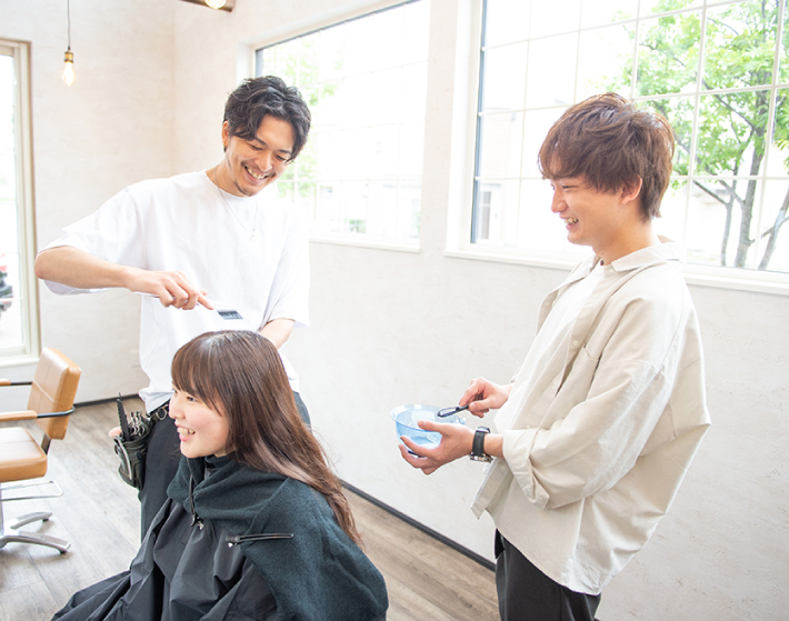 ※カラー料金にロング料金は発生いたしません。ショートヘアのお客様は毛量や髪質により技術者の判断で通常のカラーリング料金から¥1,000引きになります。